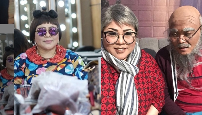 Gaya Nunung pakai wig pendek dengan poni lengkap kacamatanya ini buat menggelitik.