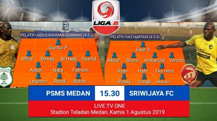 Kedudukan 1-0 bertahan hingga pertandingan yang disiarkan di TV Online TV One Link Live Streaming PSMS Medan vs Sriwijaya FC di Liga 2 2019 akan tersaji di Stadion Teladan Medan, Kamis (1/8/2019) ini berakhir.