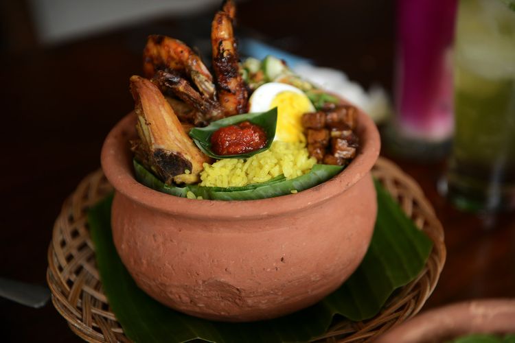 Nasi Kendil merupakan nasi yang dimasak di dalam kendi yang ditemani dengan berbagai macam lauk. (KOMPAS.com/NI PUTU DINANTY)