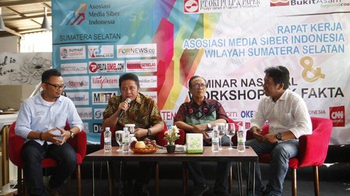 Gubernur Sumsel H.Herman Deru menyempatkan diri menghadiri Seminar Nasional Workshop Cek Fakta yang digelar Asosiasi Media Siber Indonesia Wilayah Sum