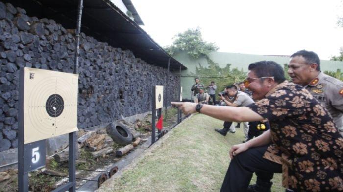 Gubernur Sumsel Herman Deru Unjuk Aksi Mahir Menembak di Lapangan Tembak Mapomdam II Sriwijaya