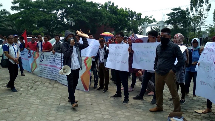 Massa menggelar unjuk rasa difasilitasi oleh Serikat Pekerja Pertanian Perkebunan Serikat Pekerja Seluruh Indonesia (SPPP-SPSI).