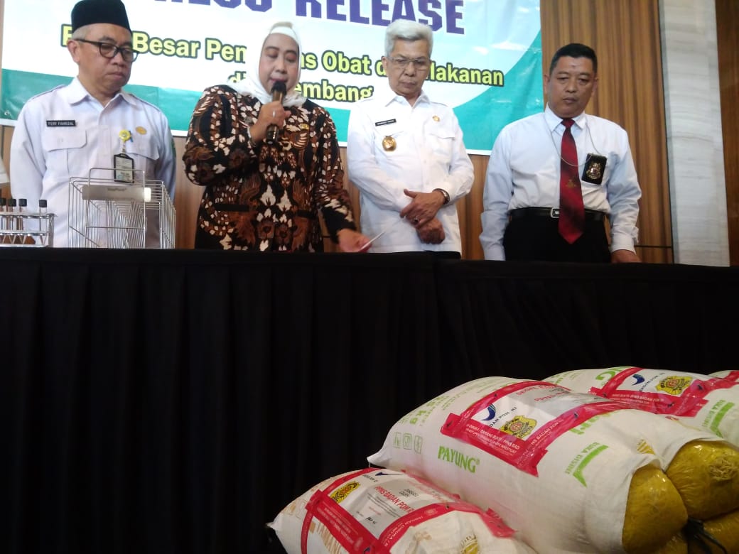 Wagup Sumsel (dua dari kanan) Mawardi Yahya saat menghadiri rilis mi mengandung formalin di BPOM Sumsel.