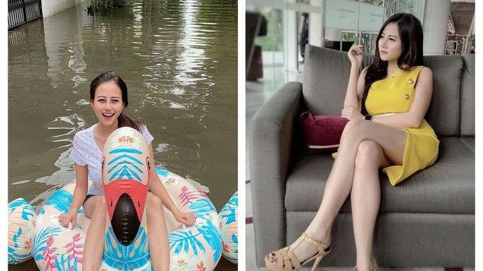 Aksinya jadi viral saat nampak bercanda sambil duduk di atas ban bebek di tengan banjir Jakarta.