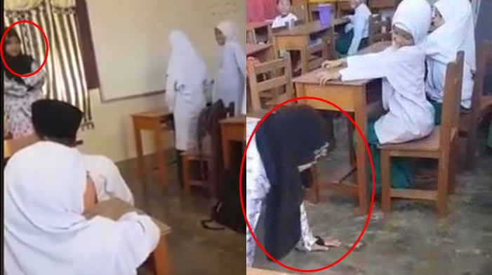 Dalam video tersebut terlihat sang guru dihukum berjalan dengan merangkak mengelilingi ruang kelas.