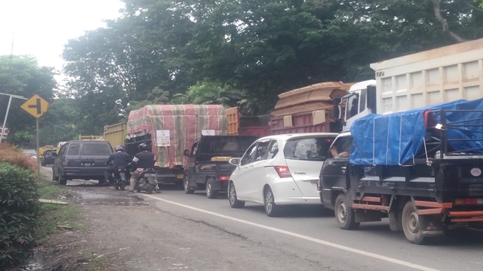 Tampak, kendaraan bertonase besar berbaur dengan kendaraan pribadi, entah itu minibus ataupun kendaraan roda dua.
