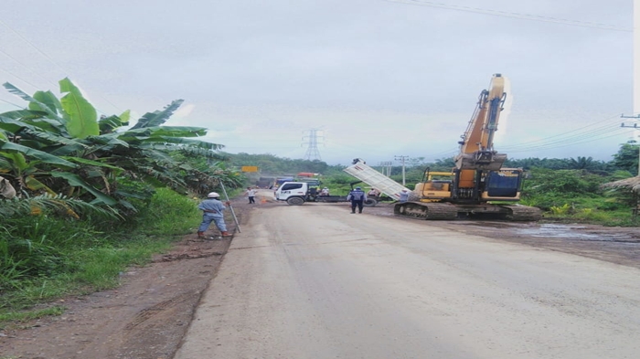 Pentingnya percepatan perbaikan mengingat jalan tersebut merupakan jalan lintas ditambah beberapa kendaraan yang terjebak macet sehingga tiga unit truk yang sebelumnya terjebak jalan amblas langsung dievakuasi.