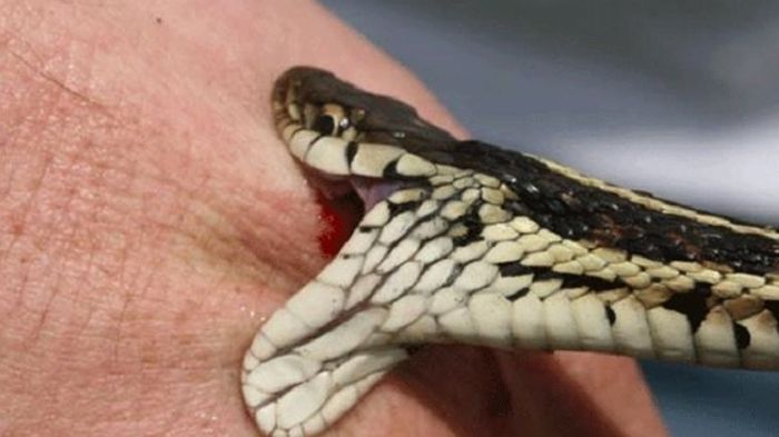 Gigitan ular tersebut tepat di bagian tangan kiri korban hingga membiru.