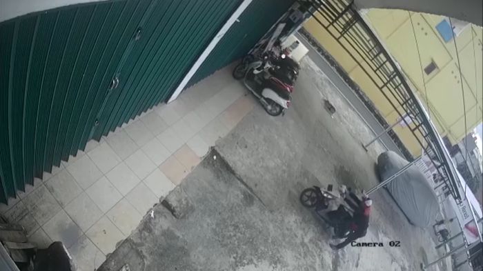 Pencuri itu lalu melakukan aksi pencurian diduga menggunakan kunci leter T, stang motor kemudian berhasil dibuka oleh pelaku.