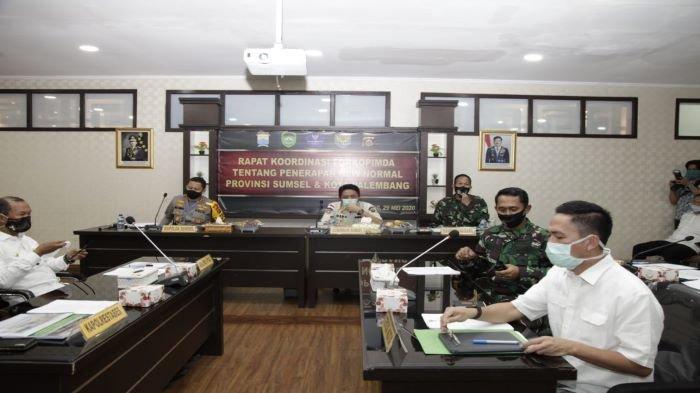 SRIPOKU.COM, PALEMBANG -- Gubernur Provinsi Sumatera Selatan (Sumsel) H. Herman Deru didampingi oleh Wakil Gubernur Provinsi Sumsel Mawardi Yahya, menggelar rapat melalui video conference bersama Menteri Dalam Negeri RI Tito Karnavian, Menteri Keuangan RI Sri Mulyani dan Kementerian kesehatan RI serta seluruh kepala daerah dari 34 Provinsi.