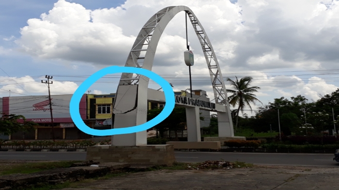 "Kita sudah memantau gapura itu, kondisi pondasi kokoh dan kita akan lakukan perbaikan lagi secepatnya sehingga tidak membahayakan pengguna jalan lainnya," bebernya.