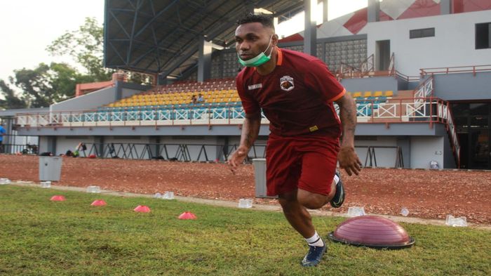 Penyerang anyar milik Muba Babel United Titus John Londouw Bonai atau Titus Bonai, sudah terlihat berlatih
