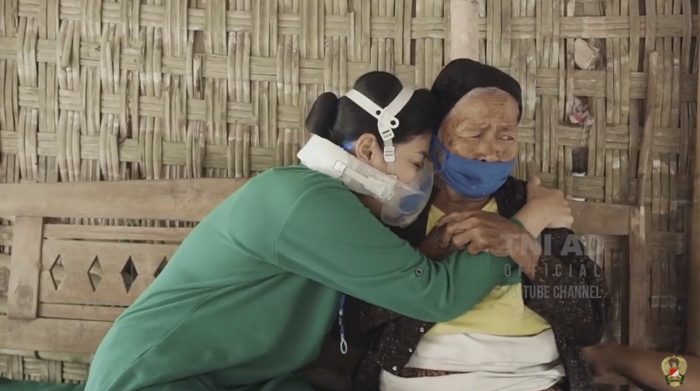 Ia langsung meminta ajudannya untuk memakaikan mbah Saodah masker.