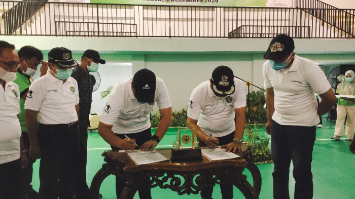 Acara penyerahan berlangsung di GOR Sepak Takraw Muara Enim, Minggu (6/12/2020).