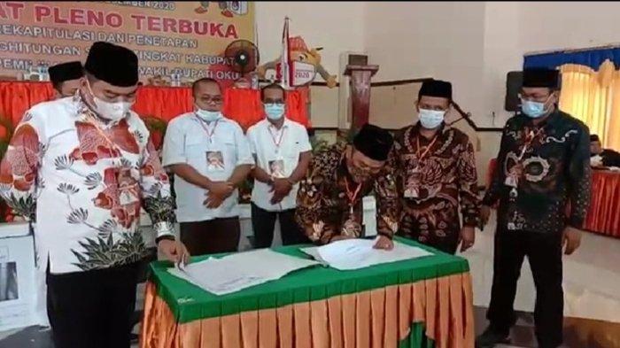 Komisi Pemilihan Umum (KPU) Ogan Komering Ulu (OKU) menetapkan hasil penghitungan suara Pilkada 2020 di OKU, Selasa (15/12/2020).