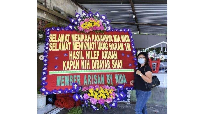 Karangan Bunga itu bertuliskan 'Selamat Menikah Kakaknya Mia Wida, Selamat Menikmati Uang Haram 1M Hasil Nilep Arisan, Kapan Nih Dibayar Shay