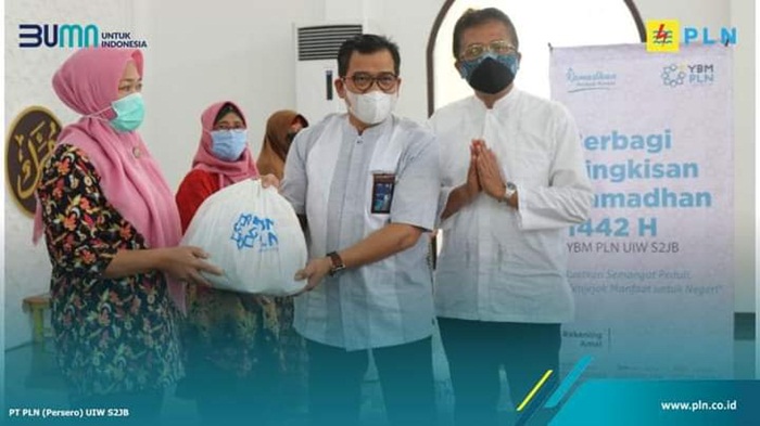 SRIPOKU.COM, PALEMBANG - Jumat, 16 April 2021 bertempat di Masjid Nurul Ikhwan PT PLN (Persero) UIW S2JB telah dilaksanakan Kegiatan “Berbagi Bingkisan Ramadhan Bersama YBM PLN UIW S2JB” yang dihadiri oleh GM PLN UIW S2JB, Camat dan Lurah setempat, Ketua YBM serta Jajaran Manajemen PLN UIW S2JB. sebanyak 350 Paket Sembako dengan total Rp 87.500.000.
