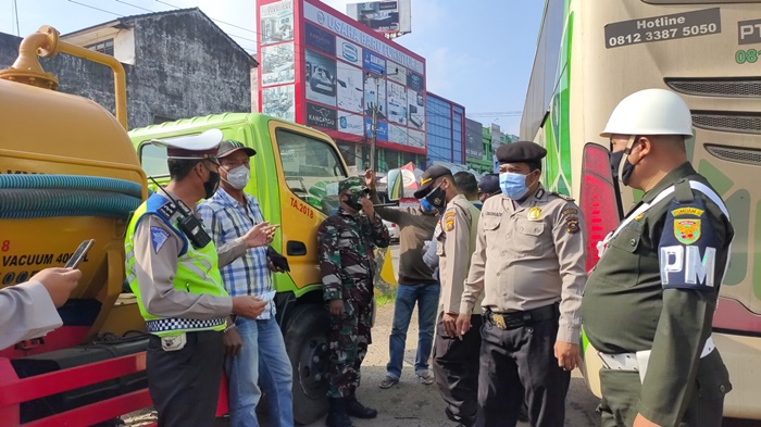 Sejumlah TNI-Polri, Dinas Perhubungan dan Satpol PP Kota Palembang mulai melakukan pemeriksaan di titik penyekatan.