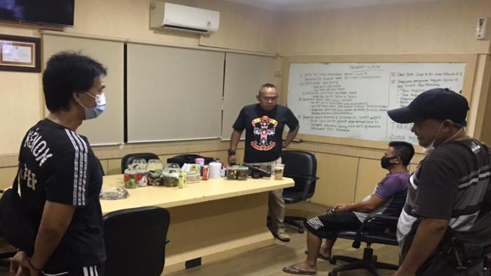 Tak pelak melihat petugas yang mengenakan baju preman membuat Gunawan hanya bisa pasrah dan mengangkat kedua tangan keatas dan mengaku bersalah.