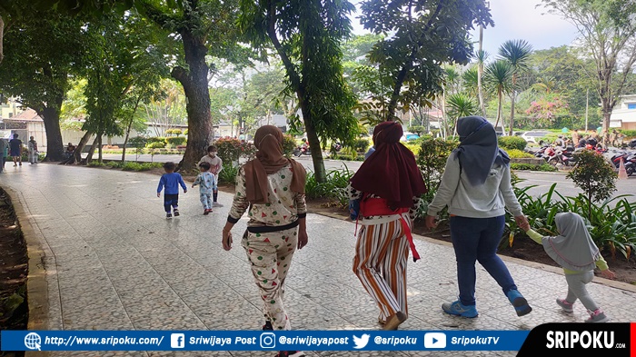 Namun disisi lain, masih banyak warga kota Palembang berolahraga dan bersantai di kawasan tersebut.
