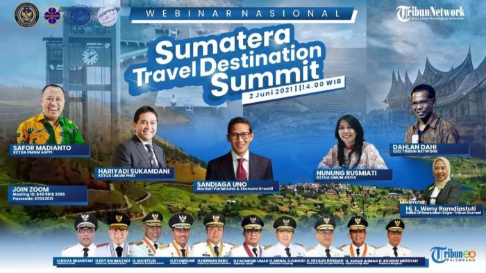 SRIPOKU.COM, PALEMBANG - Tribun Network menggelar Webinar Nasional dengan tema Sumatera Travel Destination Summit 2021.