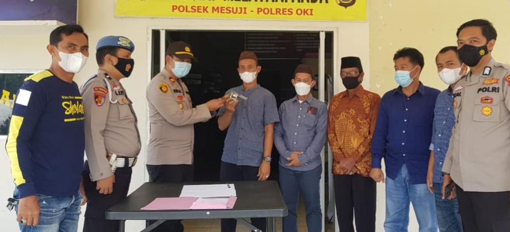 SRIPOKU.COM, KAYUAGUNG -- Masyarakat di Desa Pagar Dewa Kecamatan Mesuji Kabupaten Ogan Komering Ilir secara sukarela menyerahkan senjata api ilegal kepada kepolisian sektor setempat.
