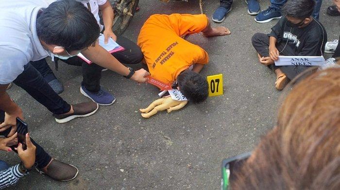 Cara sadis tersebut terlihat saat tersangka Anton memperagakan 17 adegan yang digelar Polsek Talang Ubi disaksikan Kejaksaan Negeri kabupaten Penukal Abab Lematang Ilir (PALI), Selasa (14/9/2021).