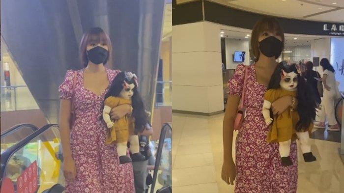 Ia terlihat membawa sebuah boneka yang disebutnya boneka arwah kemana-mana.