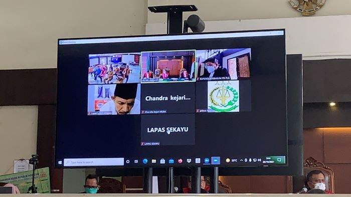 Sidang secara virtual, diketuai oleh hakim Sahlan Effendi SH MH di Pengadilan Tipikor Palembang, Selasa (26/10/2021).
