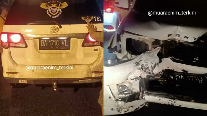 Dibagikan akun Muaraenim_terkini, insiden kecelakaan tersebut melibatkan mobil jenis SUV Toyota Fortuner nomor polisi BA 1710 VL dengan sebuah sepeda motor matic dengan nomor polisi BG 4025 JAL.
