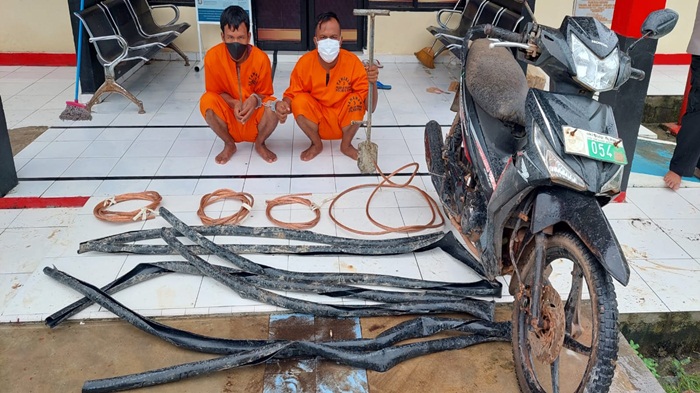 Dikatakan lebih lanjut, kedua pelaku melakukan pencurian dengan cara menggali tanah tempat kabel ditanam dengan menggunakan sekop.