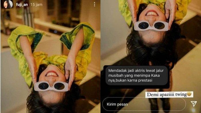 "Mendadak jadi aktris lewat jalur musibah yang menimpa kakaknya, bukan karena prestasi," tulis seorang pengguna kepada Fuji via pesan langsung (DM).