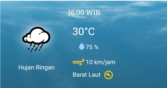 Hujan tersebut akan mengguyur pada pukul 16.00 WIB dengan kekuatan angin sebesar 10 Km/jam.
