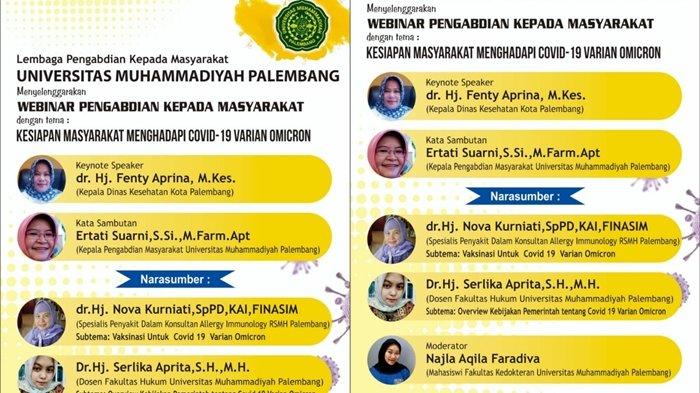 Kali ini LPPM Universitas Muhammadiyah Palembang menggelar Webinar Pengabdian Masyarakat dengan tema Kesiapan Masyarakat Menghadapi Covid-19 Varian Omicron, Sabtu (21/2/2022).