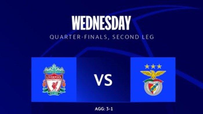 SRIPOKU.COM - Saksikan siaran langsung dan Link Live Streaming Liverpool vs Benfica pada Leg 2 Perempat Final Liga Champions UEFA (UCL) 2021-2022 disiarkan, Kamis (14/4/2022) dinihari nanti.