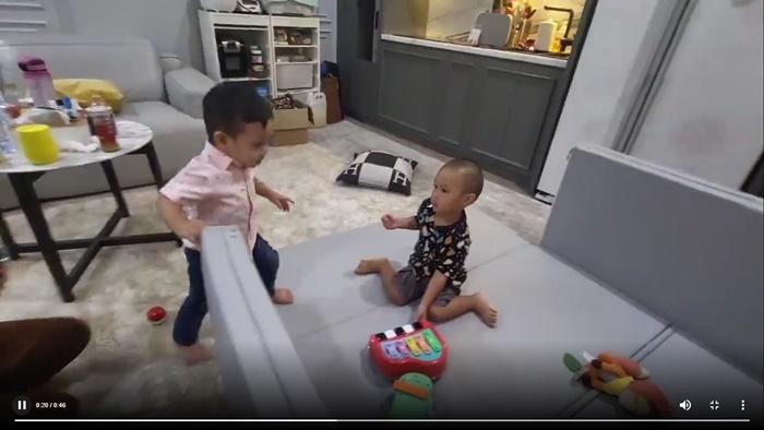 "Tuh banyak mainan. Si, main gih," kata Baim mengajak Gala bermain dengan Kiano.