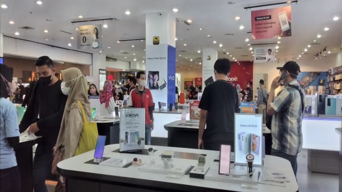 Erafone di PS Mall Palembang tengah ramai didatangi pengunjung, Minggu (8/5/2022)