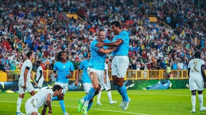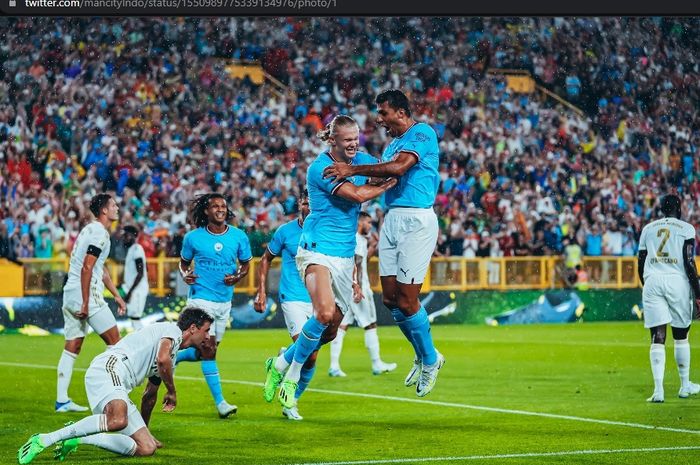 Gol dari Erling Haaland tersebut turut menandai debutnya bersama Man City dalam laga pramusim Liga Inggris kali ini setelah sebelumnya memberikan kode via Twitternya dengan mengucapkan "Insyaallah".