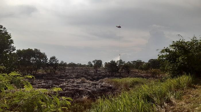 Sementara pemadaman bara api di titik kebakaran masih berlajut dengan water bombing dari satu unit helikopter BPBD Sumatera Selatan.