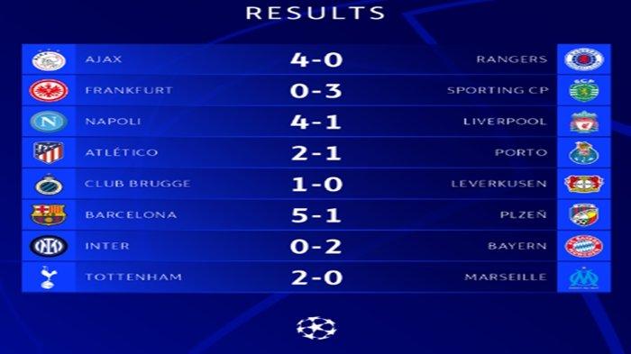 SRIPOKU.COM- Barcelona dan Bayern Muenchen berhasil kuasai puncak klasemen grup masing-masing, sedangkan Liverpool dan Inter Milan sama-sama terpuruk usai mengalami kekalahan di Liga Champions 2022-2023.