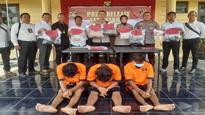 Kapolres Ogan Ilir AKBP Andi Baso Rahman, didampingi Wakapolres Kompol Vita Indrawati menerangkan tiga tersangka diamankan beserta sejumlah barang bukti.