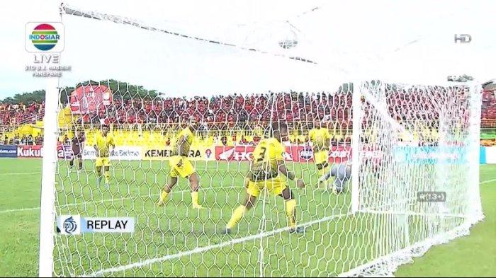 Sayangnya bukan dianggap pelanggaran dan Yance Sayuri langsung menyambar bola pantulan dan mengarah ke tiang jauh.
