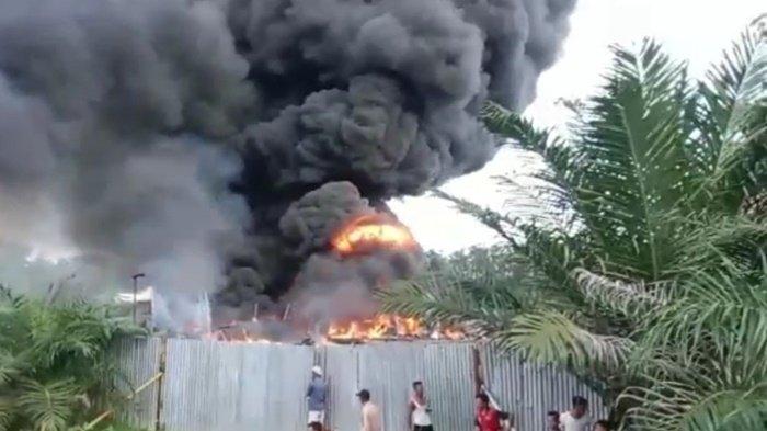 SRIPOKU.COM, MUARA ENIM - Gudang penimbunan Bahan Bakar Minyak (BBM) jenis solar ilegal di Dusun II Desa Simpang Tanjung Kecamatan Belimbing Kabupaten Muara Enim Provinsi Sumsel (Sumatera Selatan) terbakar.