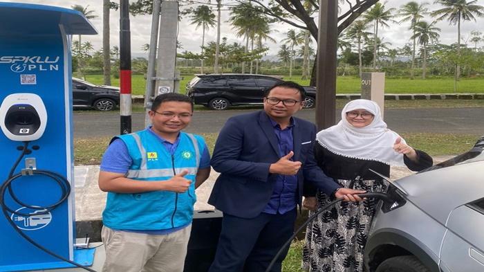 SRIPOKU.COM, TASIKMALAYA - PT PLN (Persero) menghadirkan Stasiun Pengisian Kendaraan Listrik Umum (SPKLU) pertama di kawasan wisata Pangandaran.