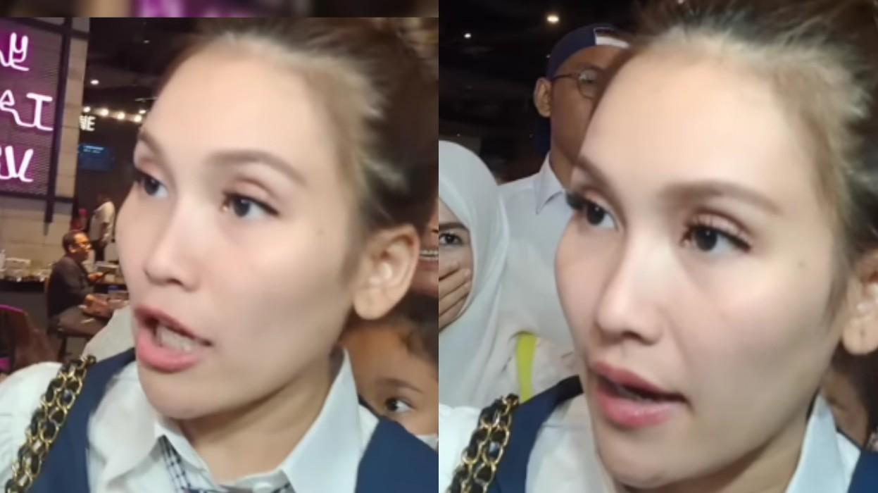 Tampak raut wajah geram dari Ayu Ting Ting ketika menyuruh anaknya menghindari awak media.