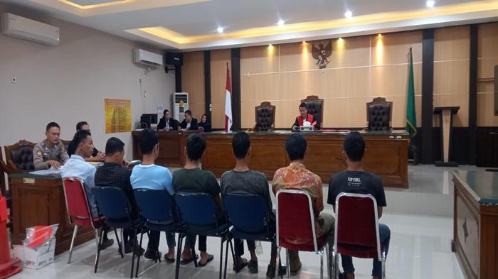 Dalam perkara dengan berkas terpisah tersebut ada tujuh terdakwa yakni Erwin Riadi (30), Epi jon (38), Erdani (32), Albal dwi saputra (28), Andi hariansyah (30), Dadang Haryono (40) dan Apriansyah (38).