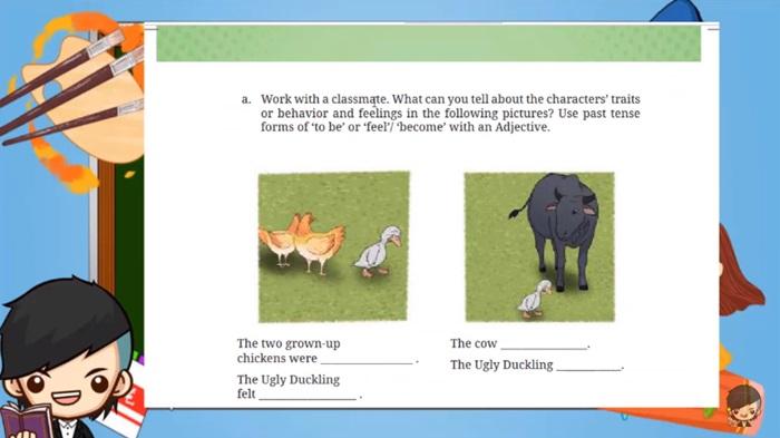 a. Work with a classmate. What can you tell about the characters’ traits or behavior and feelings in the following pictures? Use past tense forms of ‘to be’ or ‘feel’/ ‘become’ with an Adjective.