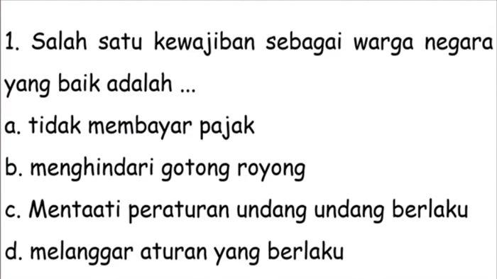 1. Salah satu kewajiban sebagai warga negara yang baik adalah ...