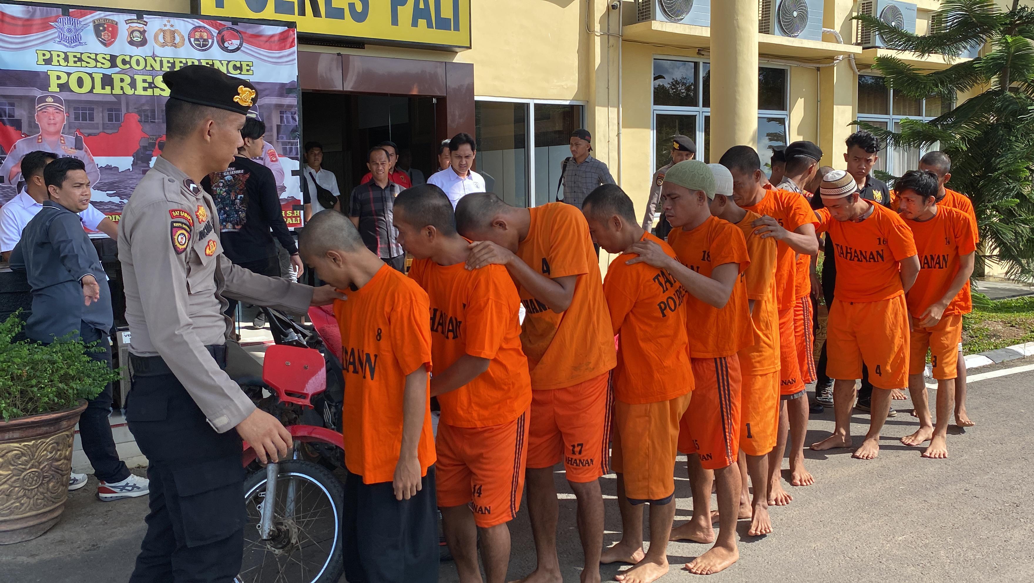 "Untuk tersangka ada 13 orang yang kita tampilkan disini, 10 sisanya dalam penahanan Polsek wilayah Polres PALI," terangnya.