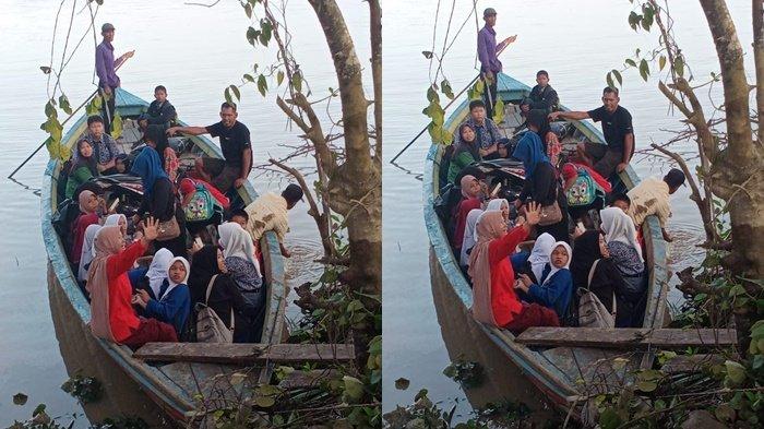 Sejumlah masyarakat tersebut mengantri untuk menaiki perahu atau ketek untuk menyebrang ke P.11 untuk melaksanakan aktvitas sekolah dan bekerja.